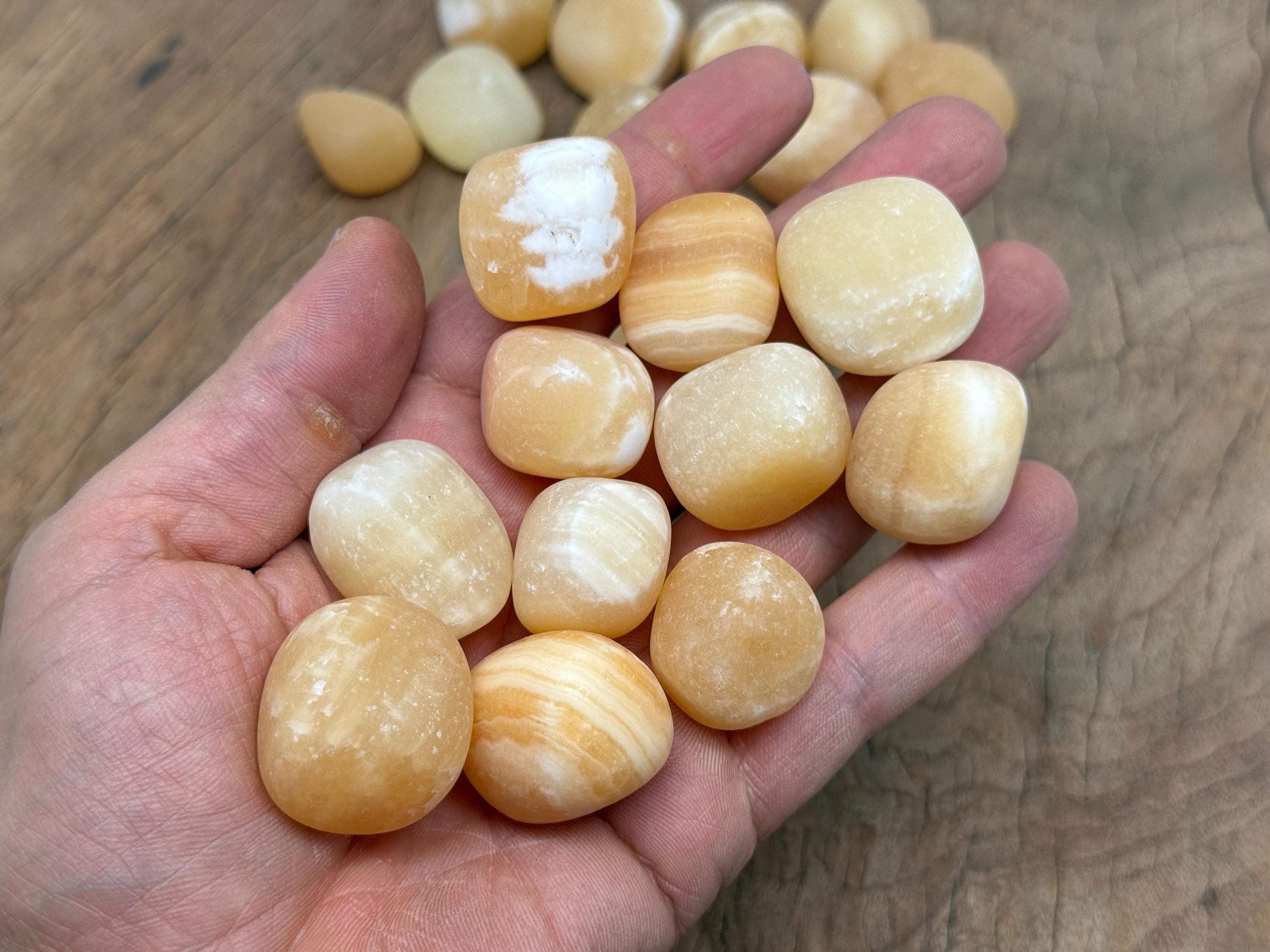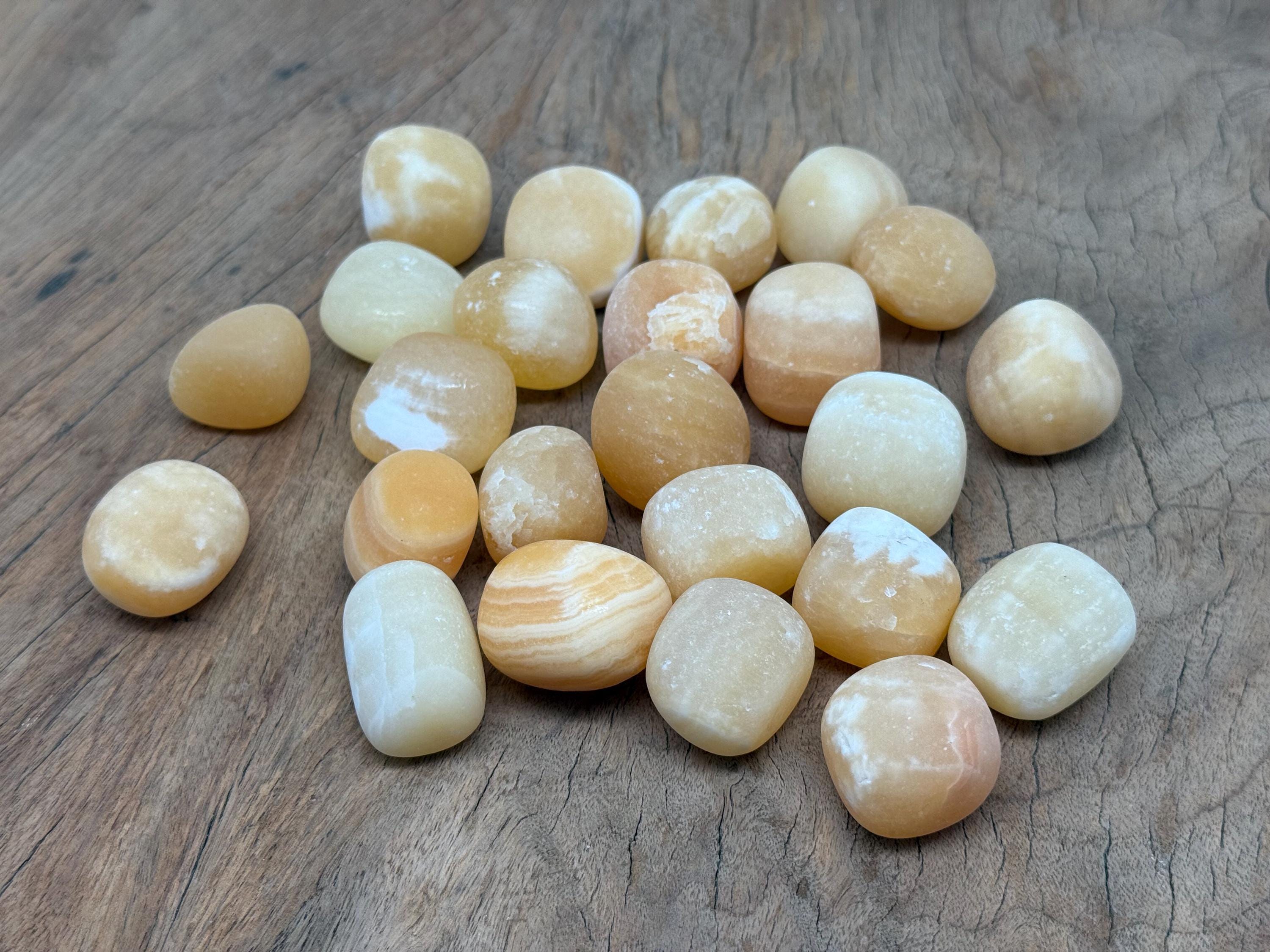 These tumbled stones are high-quality grade A natural Yellow Calcite gemstones. This gemstone brings joy and happiness. You can use these Calcite stones in your jewelry designs, crystal décor, and spiritual work. Yellow Calcite aids the digestive and elimination systems of the body. It helps us to connect to higher vibration energies, increasing our insight and helping us to act intuitively.