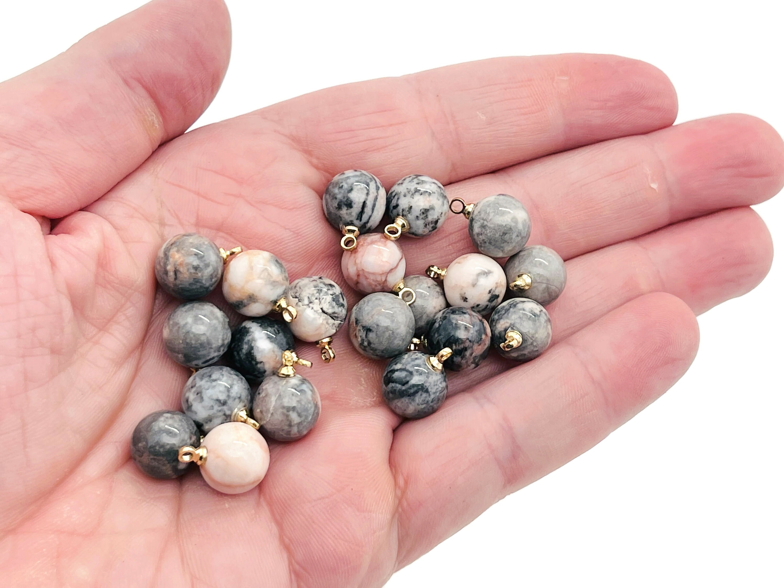 Pink Zebra Calcite Ball Beads - Crystal Beads Earring