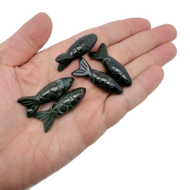 Moss Agate Gemstone Fish Carving Pendant
