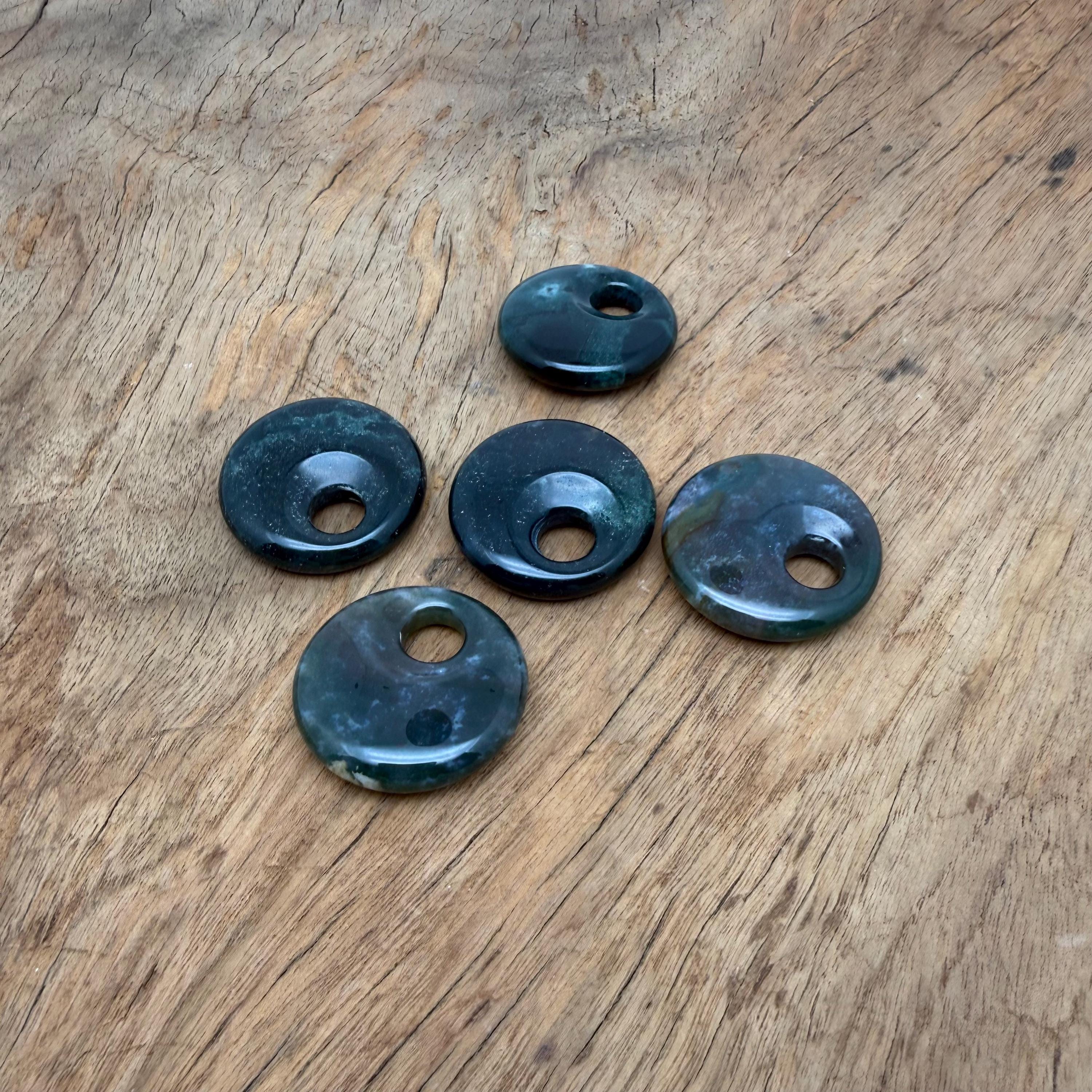 Moss Agate Polished Gemstone Donut Pendant