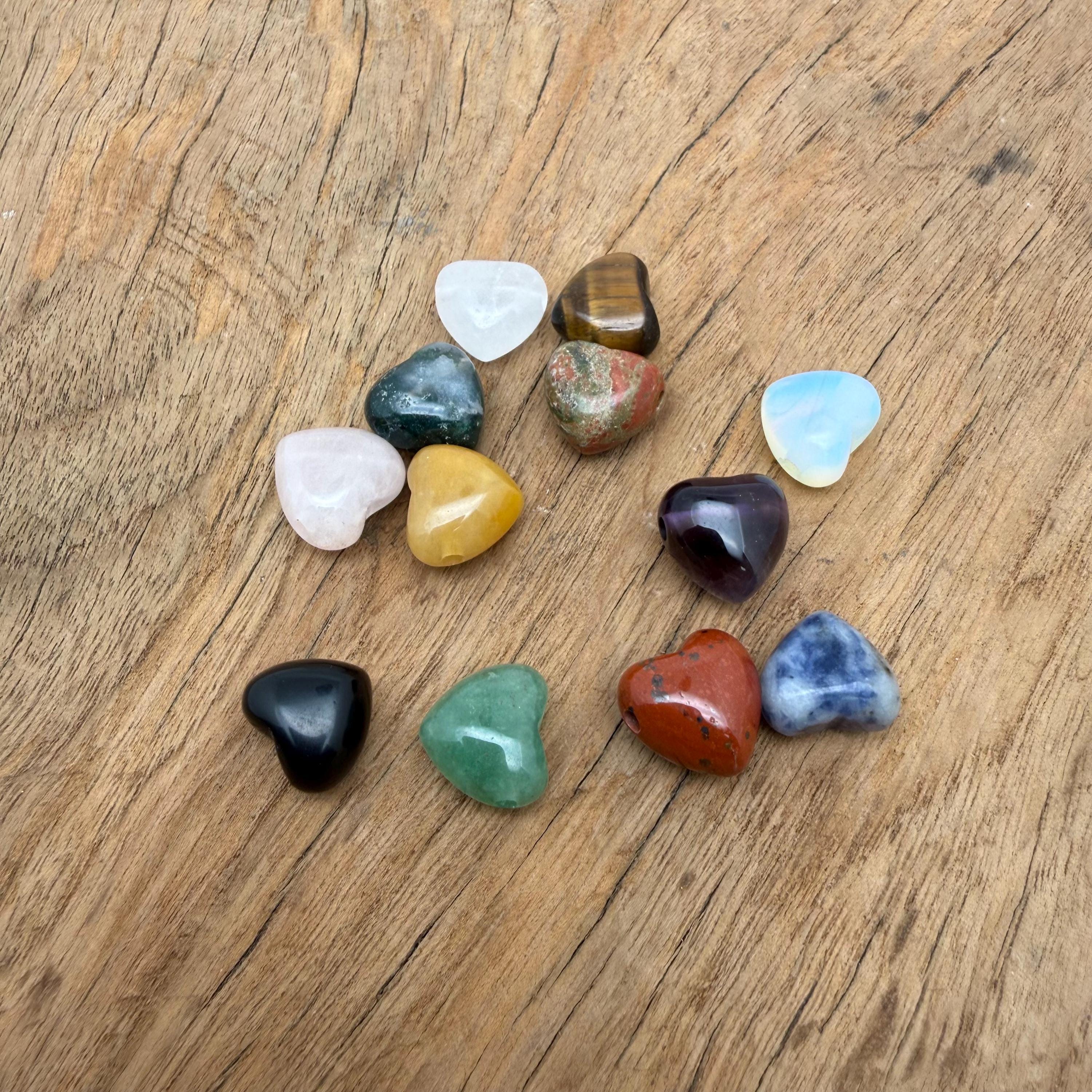 These mini gemstone heart beads symbolize love, emotional balance, and gentle healing energy. Each natural stone carries its own supportive vibration—promoting protection, clarity, grounding, happiness, intuition, and inner peace. Their heart shape represents compassion, harmony, and positive connection, making them ideal for creating meaningful jewelry, intention bracelets, and heartfelt gifts.
