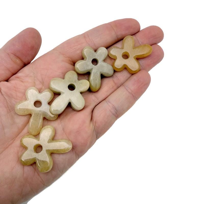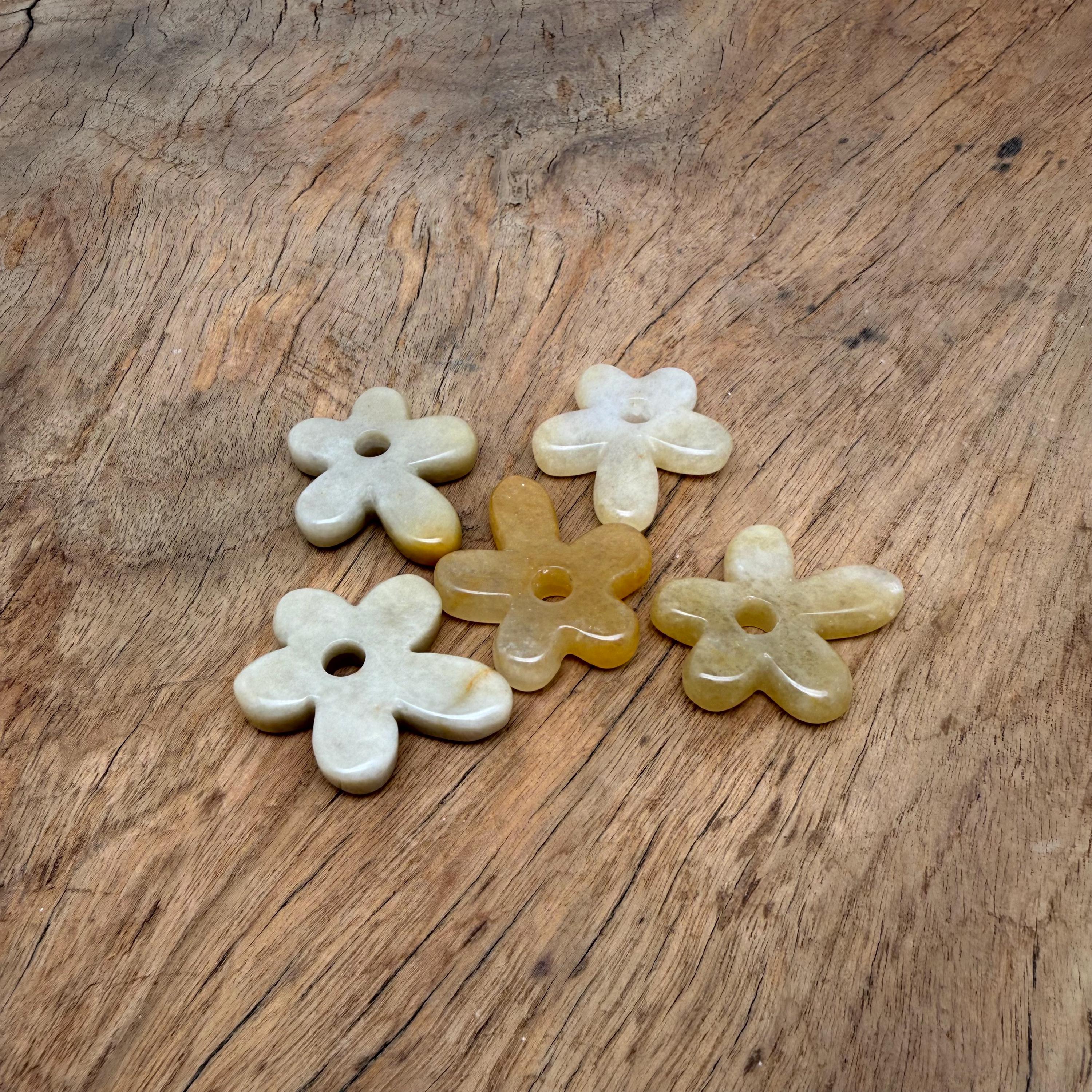 Flower-shaped gemstone pendants represent growth, renewal, beauty, and positive transformation. The five-petal form symbolizes balance and harmony, while the donut center represents energy flow and protection. These natural stones support emotional healing, joy, and inner peace—making the pendants powerful charms for new beginnings, creativity, and uplifting energy.