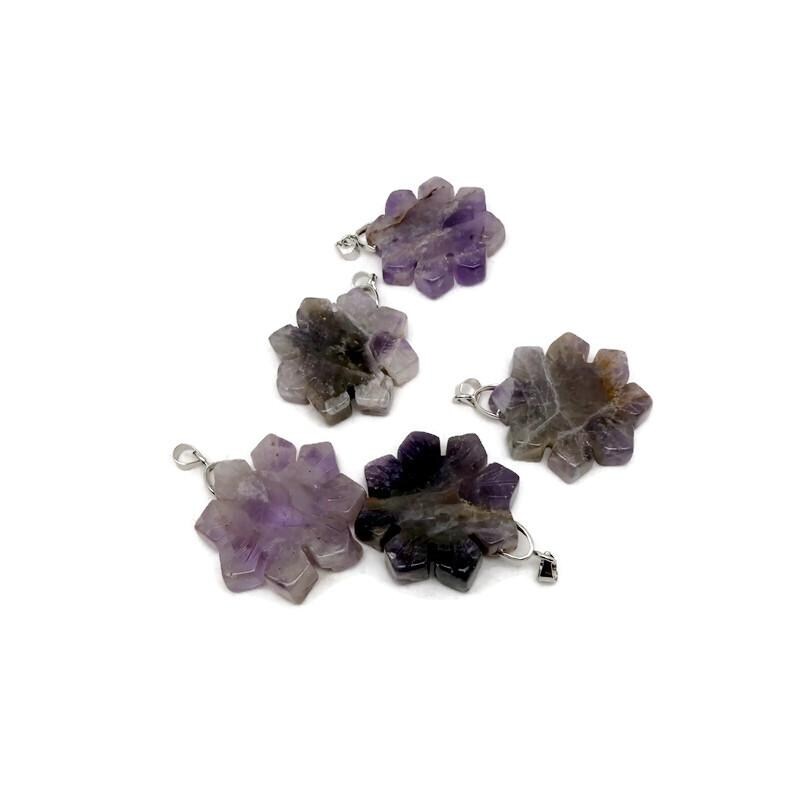 Snowflake-shaped gemstone pendants symbolize uniqueness, purity, clarity, and inner balance—just like every snowflake is one of a kind. Their symmetrical form represents harmony, protection, and calm energy, helping the wearer stay centered and grounded. Each natural stone enhances emotional healing, confidence, intuition, and positivity, making these pendants powerful charms for clarity, peace, and personal growth.
