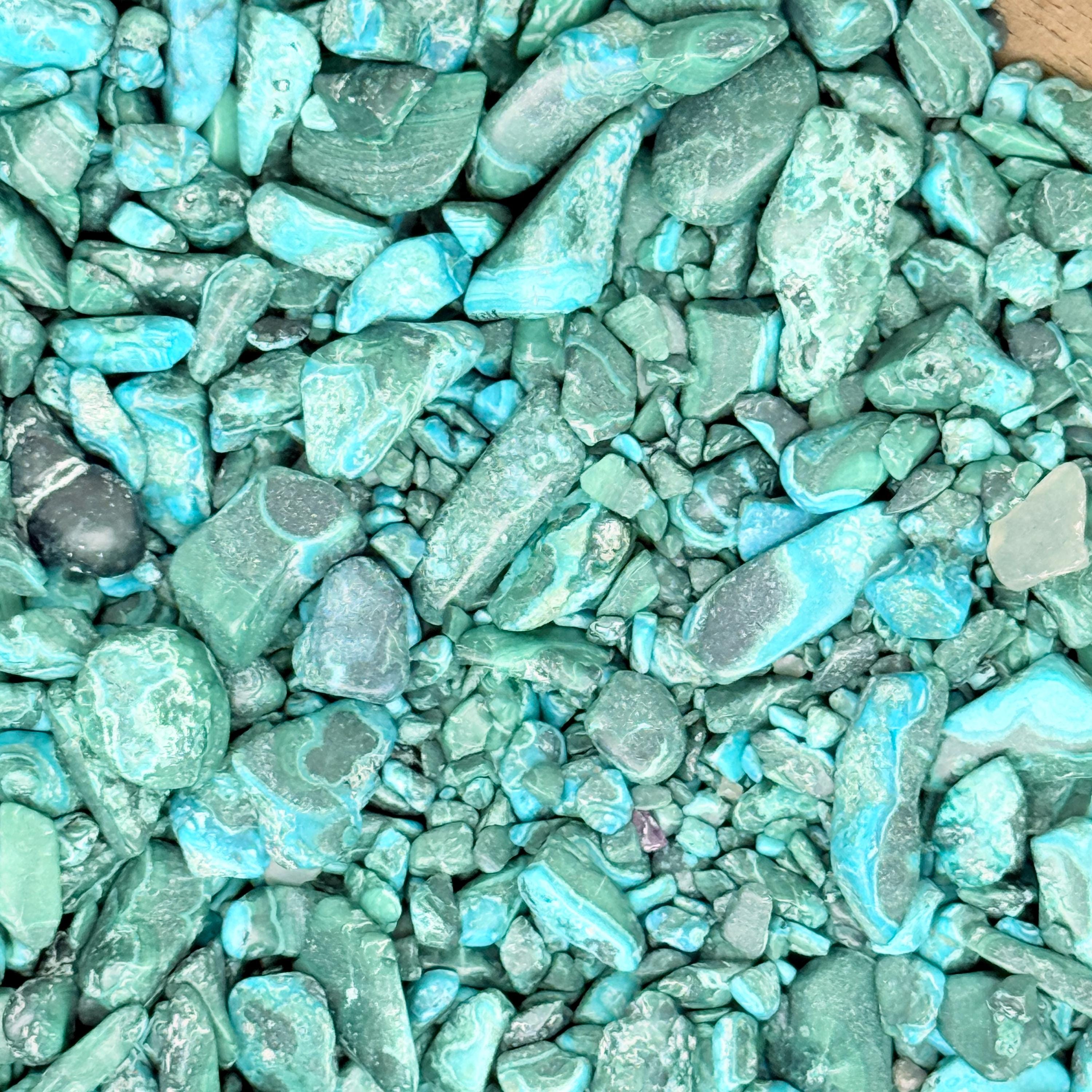 Chrysocolla Malachite is a powerful combination stone blending blue Chrysocolla (communication, serenity) and green Malachite (transformation, protection). It promotes heartfelt communication, emotional balance, and spiritual growth, acting as a soothing tool for relieving stress, fear, and negativity while balancing the heart and throat chakras.